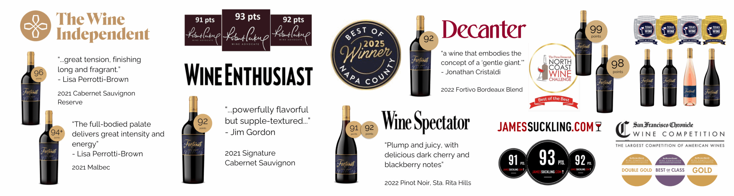 We have had the honor of receiving numerous reviews from top wine critics along with double gold, gold and best of class accolades.